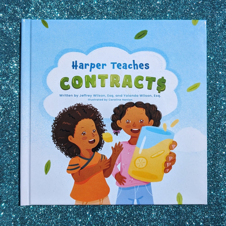 Beautifully illustrated and creatively written, the hardcover version of Harper Teaches Contracts follows the journey of a young girl named Harper as she teaches her brother, Miles, how to start businesses. With the help of her friends, Harper organizes several businesses, from a candy store to a lemonade stand.