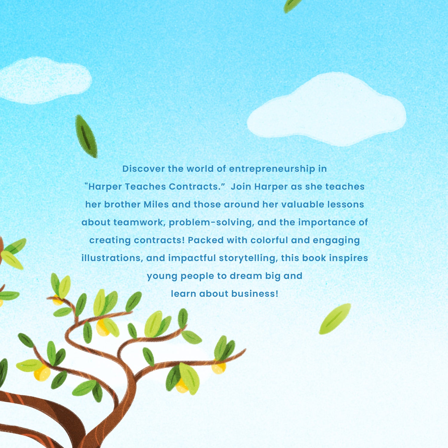 Beautifully illustrated and creatively written, Harper Teaches Contracts follows the journey of a young girl named Harper as she teaches her brother, Miles, how to start businesses. With the help of her friends, Harper organizes several businesses, from a candy store to a lemonade stand.