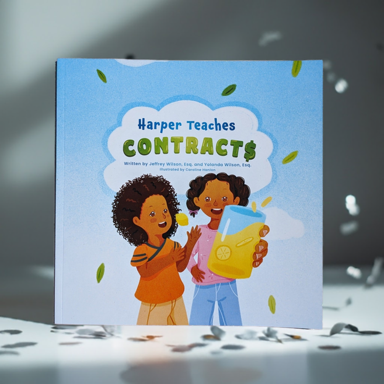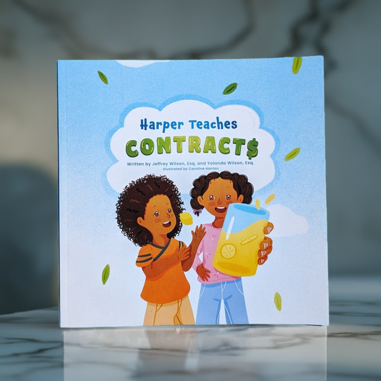 Beautifully illustrated and creatively written, the paperback version of Harper Teaches Contracts follows the journey of a young girl named Harper as she teaches her brother, Miles, how to start businesses. With the help of her friends, Harper organizes several businesses, from a candy store to a lemonade stand.